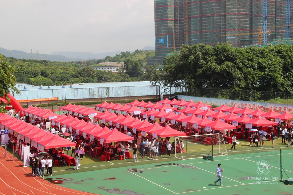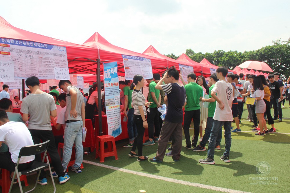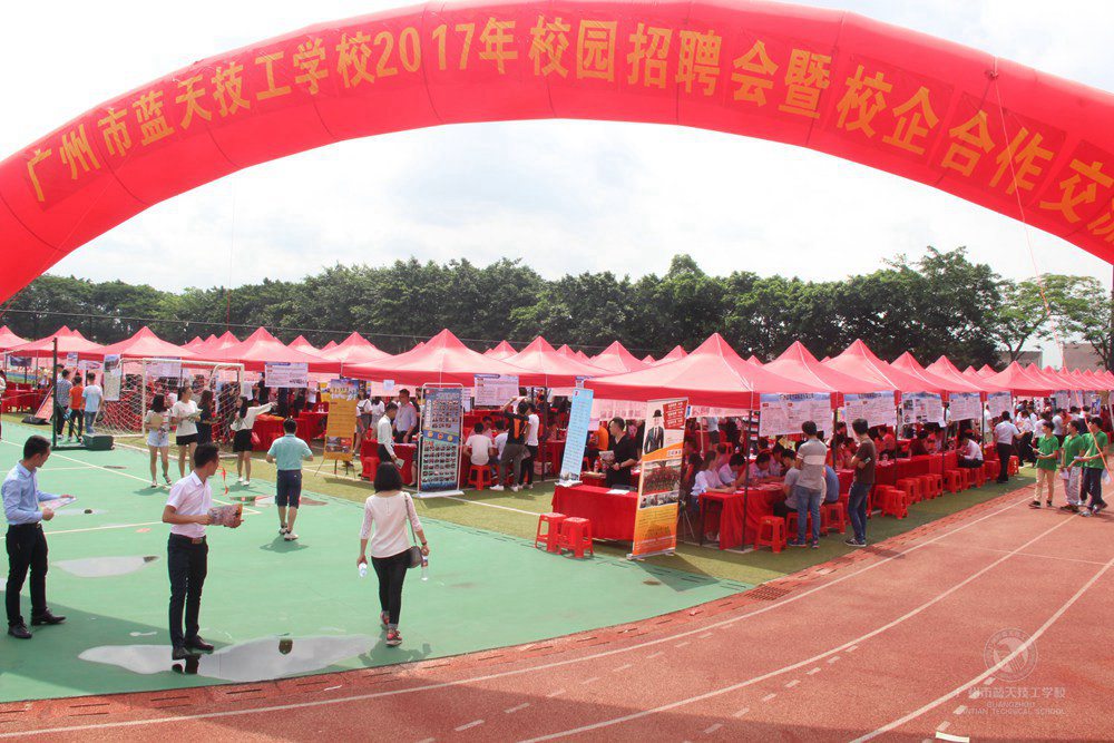 2017年6月16日上午,由广东省人力资源研究会与广州市蓝天技工学校共同策划主办2017年校园招聘会暨校企合作交流会盛大开幕。此次校园专场招聘会吸引了120余家企业前来设台,完全满足了我校2015级中、高技各个专业学生实习的需要。现场场面宏大,气氛热烈。