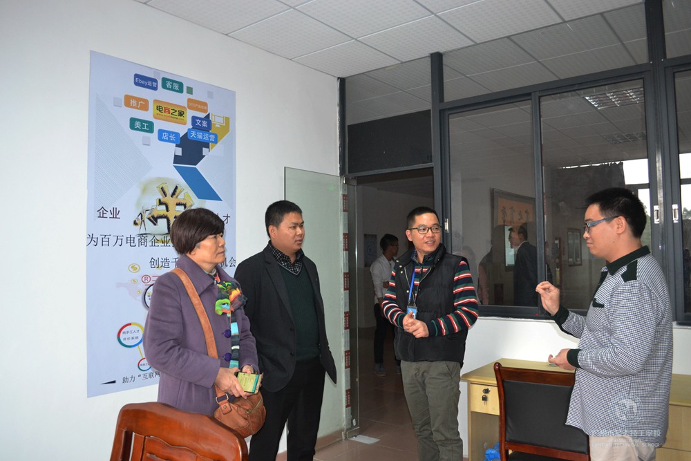 会后,纪少游院长陪同黄荣军、徐惠芳院长实地考察了电子商务产业系。电商系苏主任向领导们介绍了电子商务产业系师生工作室建设、学生网店经营业绩、校企合作等情况。