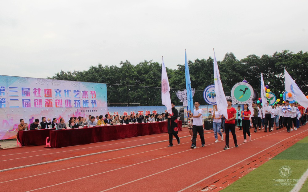 2017年4月13日上午,广州市蓝天技工学校第三届社团文化艺术节暨第二届创新创业技能节在校园运动场隆重开幕。校领导罗荣禄、杨长生、丁海洋、赖乾佑、黎筱轮、谢齐桂以及部分合作企业嘉宾出席了开幕式。
