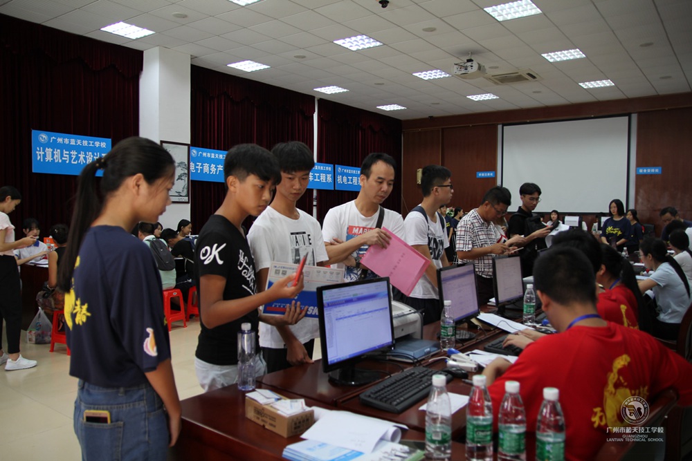 2017年08月19日,广州市蓝天技工学校2017级小鲜肉新鲜出炉。为了迎接他们的到来,迎新帐篷早在前几日就搭建起来,今天早上八点新生接待干部全部到位。在教学楼前的报到帐篷处,上午8点多新生和家长们就络绎不绝。