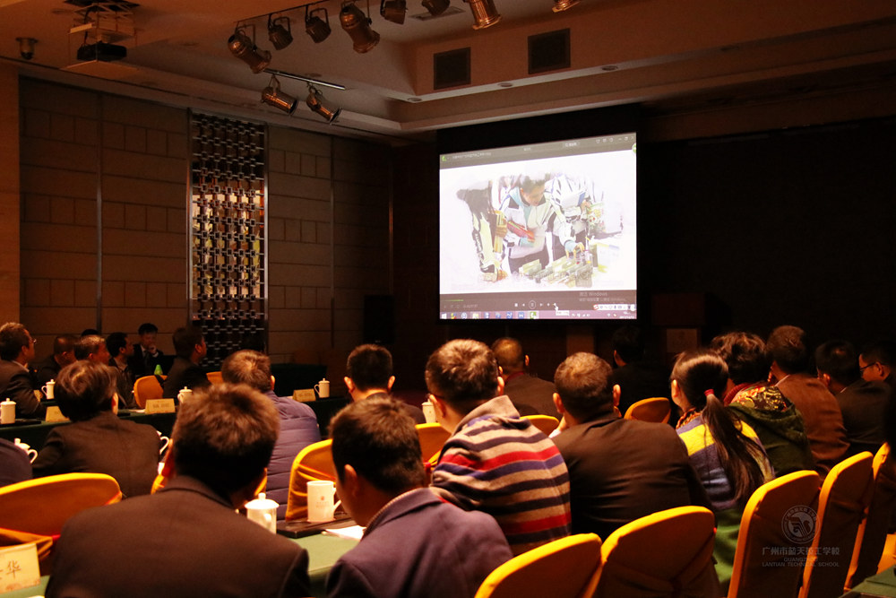 蓝天技校在会上播放了学校的宣传视频,向与会人员展示了学校的基本概况、办学历程及办学成果。