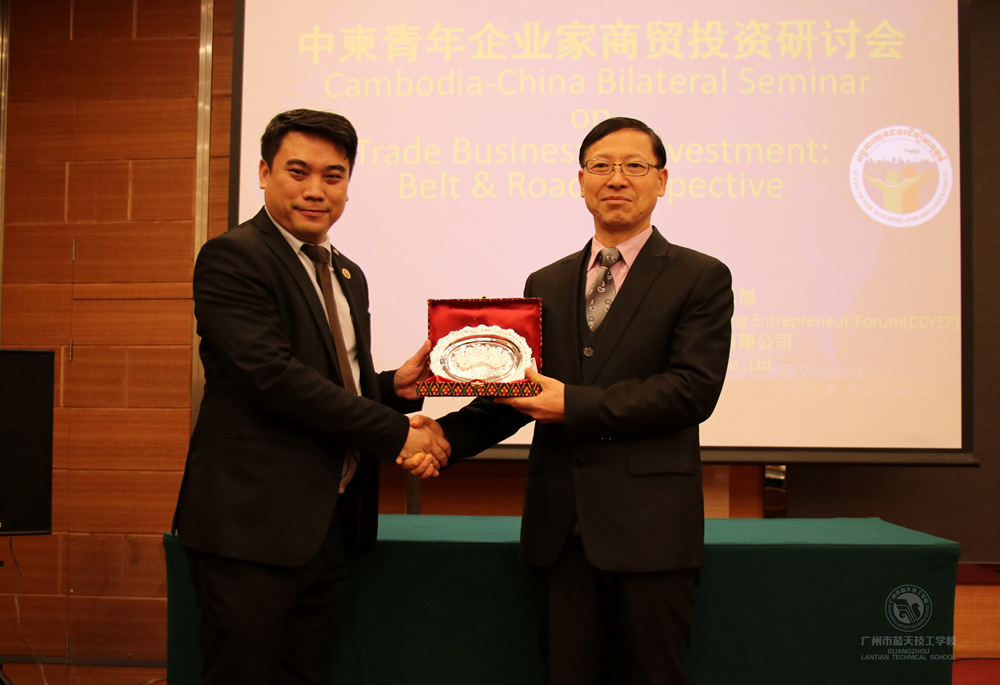 2017年12月14日,由中侨国际安保服务有限公司主办的“中柬青年企业家商贸投资研讨会”在华厦大酒店隆重召开,广州市蓝天技工学校罗荣禄校长率队参加了会议。参加本次研讨会的还有柬埔寨王国副国务卿、国会议员 hak ,柬埔寨王国投资协会公共关系及投资促进部负责人 Suon Sophal ,柬埔寨王国祖国青年团主席 Vath 和中柬双方企业家代表。