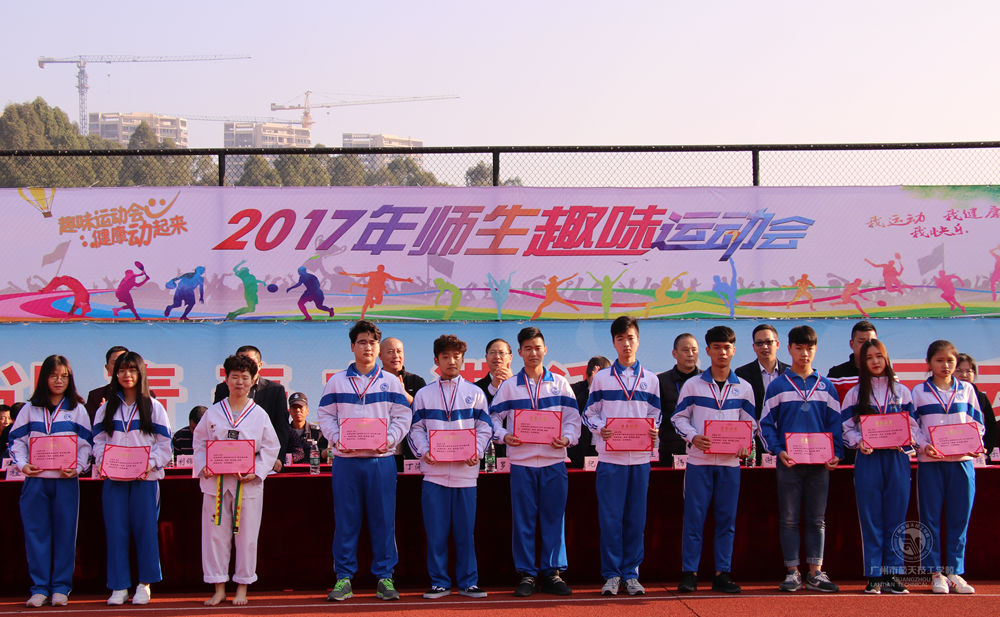 为活跃校园文化氛围,增强师生凝聚力,展现新时代师生的活力和竞技热情,丰富全校师生的课余文化生活,2017年12月29日,广州市蓝天技工学校在足球场隆重举行2017年师生趣味运动会。学校领导罗荣禄、纪春苗、杨长生、丁海洋、赖乾佑、谢齐桂以及全体师生参加了本次运动会。