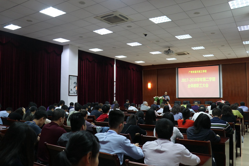 发展是第一要务。会上罗荣禄校长紧紧围绕学校的发展问题提出了2018年工作的重心。一是夯实基础,创造条件,力争成功申报并晋升广东省高级技工学校。二是全力做好招生工作,稳定学校办学规模,坚持学制教育与职业培训并重,努力寻求职业培训新途径。三是全面推行实施ISO9001质量管理体系标准,提高学校管理水平。四是加强重点专业与特色专业建设,优化专业布局与技能人才培养课程体系,加快特色专业培育与建设,形成具有较强竞争力的蓝天特色专业或品牌专业。五是继续加强校企合作、校企共建专业的力度与持续性,注重校企合作项目的实际效果与多赢效益评价。六是提升德育工作水平,重视学生诚信人格教育,加强校园文化建设,营造积极向上的人文氛围,努力提升学生的综合素质。七是以优化与提高教师队伍素质为突破口,推动管理干部与行政后勤队伍的能力建设,努力建设一支结构合理、勇于创新、师德高尚、业务精湛、掌握现代教育技术、具有较强的教科研能力与实际动手能力的“一体化”教师队伍和综合素质高、执行能力强、服务态度好的管理、行政、后勤服务队伍。八是高度重视“六率”统计指标的导向作用,通过抓“六率”指标的提升,来推动学校办学质量的提升。