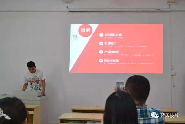再次是除了上述两组学生创业团队以外的唯一一组学生创新团队。该团队由吴清雅老师指导的2016级中技生温小丹和廖文婉两位同学组成。她们演讲的内容是:电商美工设计之途,通过“水密方”保温杯产品详情页向在场的师生展现了其设计思路。此设计已被天猫店使用,为企业带来了不错的销量。