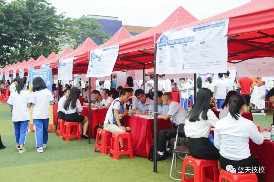 在学校领导的关怀指导下,就业服务中心于4月份开始启动企业招聘的策划工作。于6月12日上午,由广东省人力资源研究会与广州市蓝天技工学校共同策划主办的2018年校园大型招聘会如期盛大开幕,为2016级学生构建便捷、丰富的实习岗位自选平台。本次校园招聘会,吸引了广东奇趣网络科技有限公司、广州市乐家生鲜农产品有限公司、广州通昱汽车有限公司、广东意高能源科技股份有限公司、深圳中升腾泰有限公司、广州铭智汽车(吉利汽车)等270余家企业前来设台,很大程度上满足了我校2016级中、高技各个专业学生实习的需要。招聘现场气氛热烈,场面宏大。