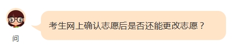 答:不能。今年依学考成绩招生录取志愿填报取消了考生志愿现场签名确认及申请更正环节。考生在点击“志愿确认”按钮前,务必认真核对所填报的院校及专业志愿。考生在网上填报的志愿,一经确认,任何人不得再进行更改。投档时,以考生网上确认的志愿数据为准。