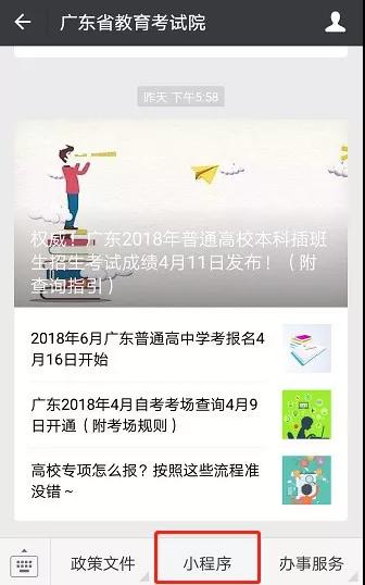考生关注广东省教育考试院官方微信(ID:gdsksy),或登录广东省教育考试院官网(www.eeagd.edu.cn)关注广东省教育考试院官方微信。