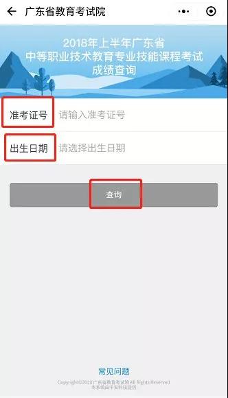 输入“准考证号”和“出生日期”,点击“查询”,即可查到成绩。
