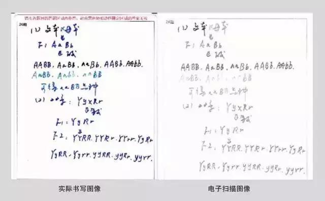2、蓝色钢笔书写后,扫描字迹较浅,若无法辨认,容易误判或不给分。