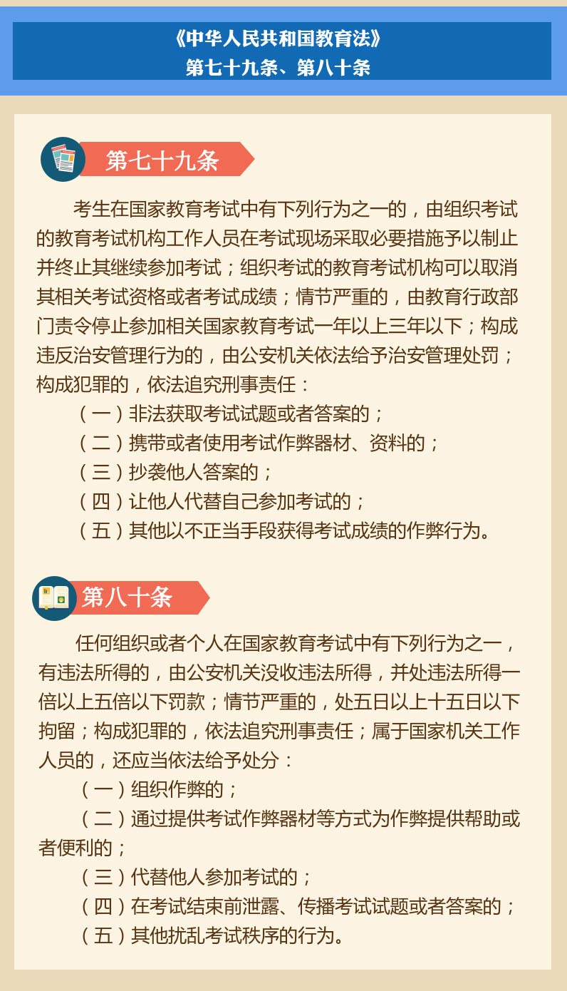 2018年普通高等学校招生全国统一考试将于6月7-8日举行。为营造公平、公正的考试氛围,小编摘登有关法律法规内容,希望考生自爱自重,做到诚信、守规、守纪、守法、文明考试。