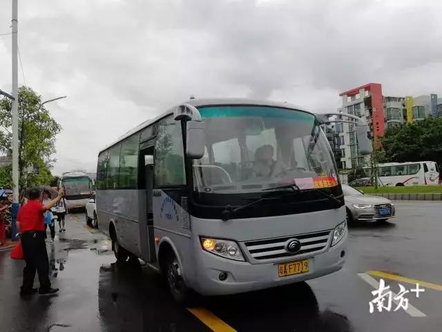 【广州市第八十九中学】高考用车将考生们送到广州市第八十九中学门口。(马立敏)