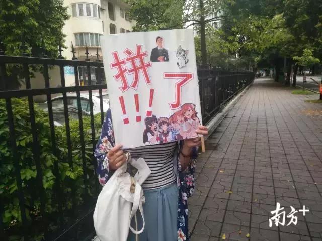 【深圳】杰伦为你打call!考场外的家长们暂时离开了,一位姐姐来晚了,错过了给弟弟送考,她昨天做了一个加油海报,“他很喜欢周杰伦和动漫,希望他金榜题名考出好成绩!”(林又又)