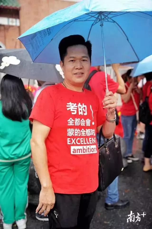 【执信中学】家长身着鼓励考生的T恤。(张迪)