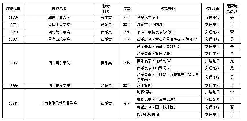 根据《教育部办公厅关于做好2018年普通高等学校部分特殊类型招生工作的通知》(教学厅〔2017〕15号)有关精神,现对部分高校因新增艺术类校考专业,以及新上报和需要更正的艺术类校考专业予以补充公布如下。