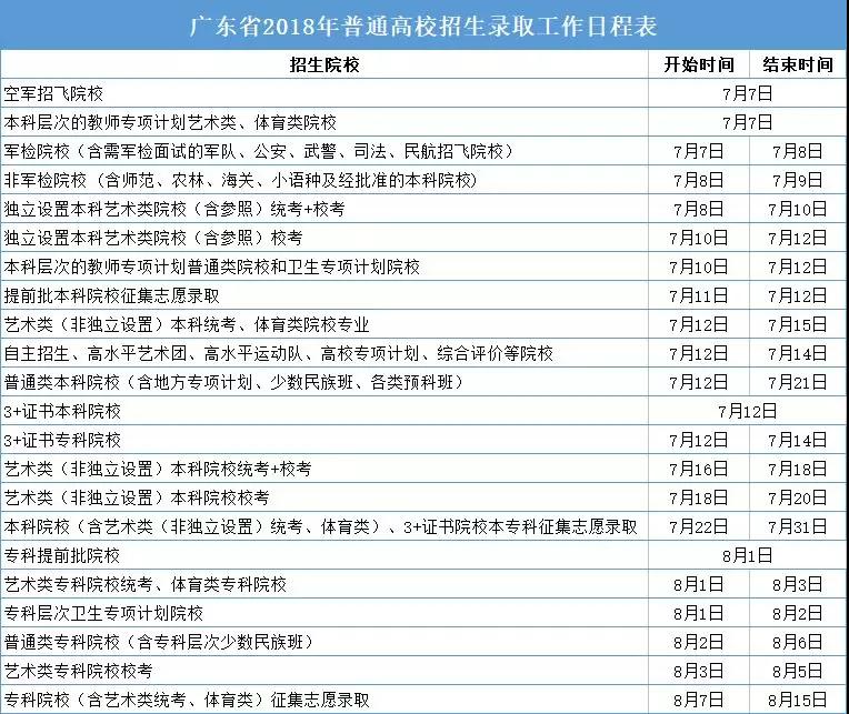 昨日,我省2018年高考志愿填报工作已经顺利结束。广东省2018年普通高校招生录取工作将从7月7日开始,至8月15日结束。