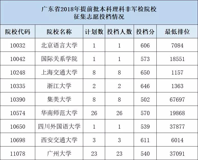 7月12日,省招生办对提前批军检院校和非军检院校征集志愿进行了投档,共投出考生190人。征集志愿生源良好,各院校征集志愿投档分数与第一次投档大致持平,有的还高于第一次投档最低分数线,提前批本科院校基本完成招生计划,我省提前批录取工作顺利完成。