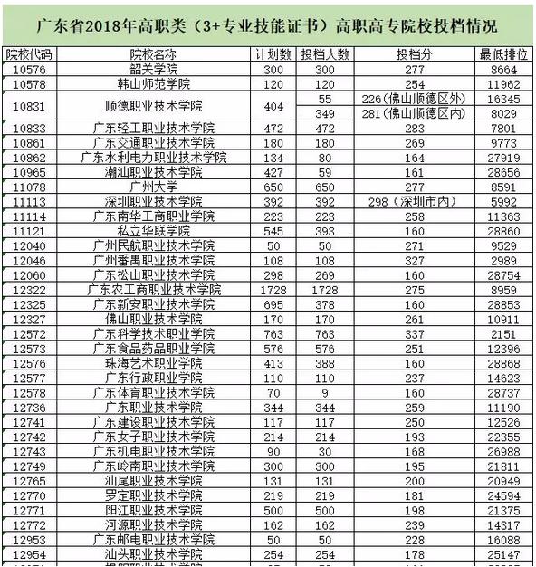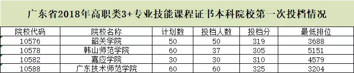 各位考生注意啦!广东省2018年“3+证书”本专科院校投档情况公布啦!