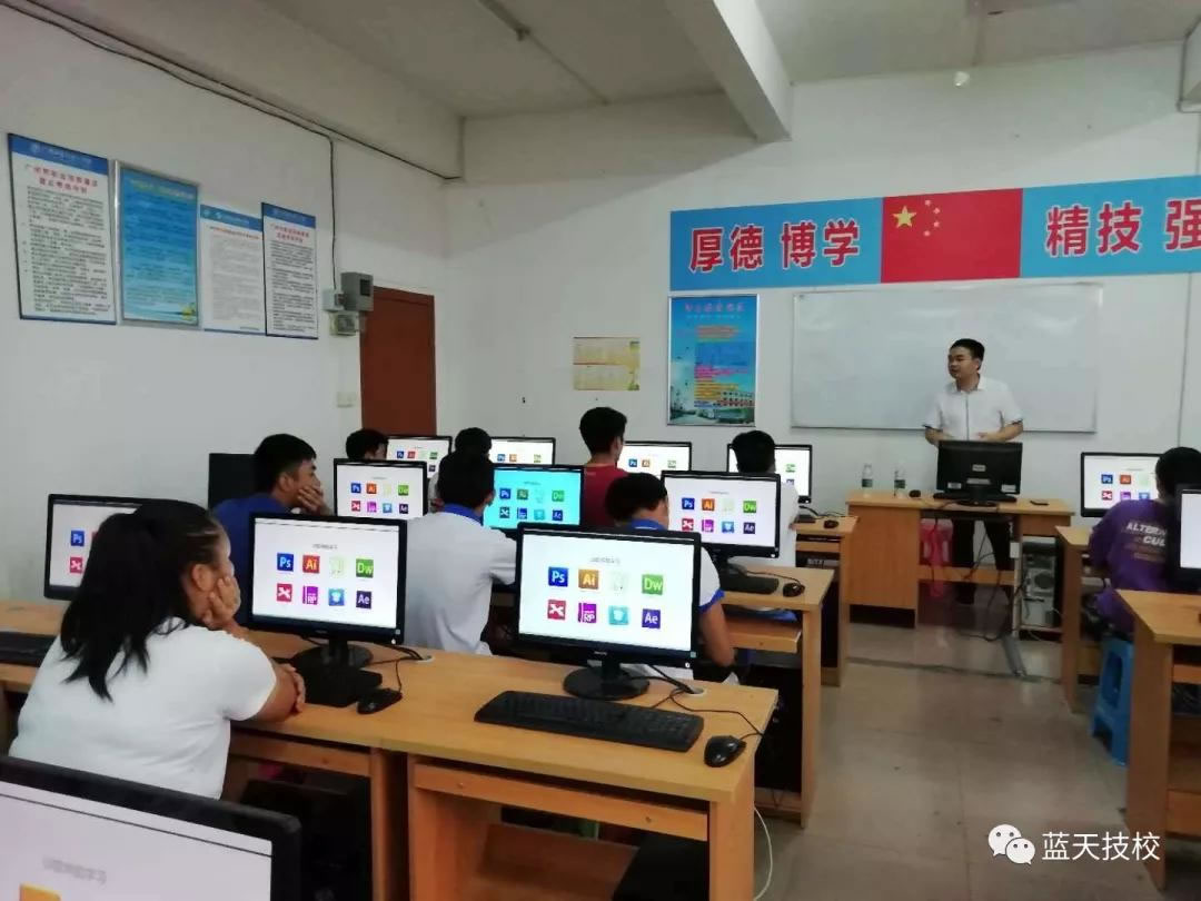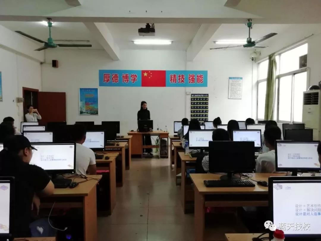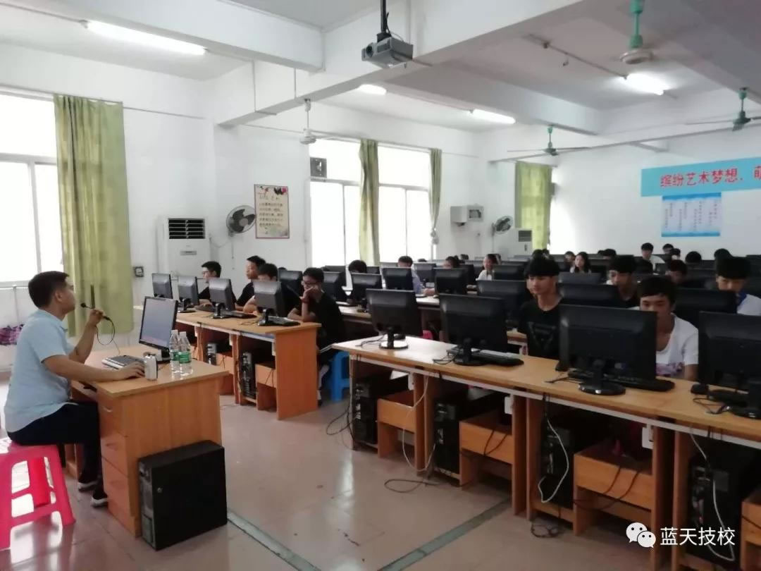 图为广州粤嵌通信科技股份有限公司的朱老师给学生们讲解ui设计行业分析及其就业前景。同学们坐姿端正的听讲。