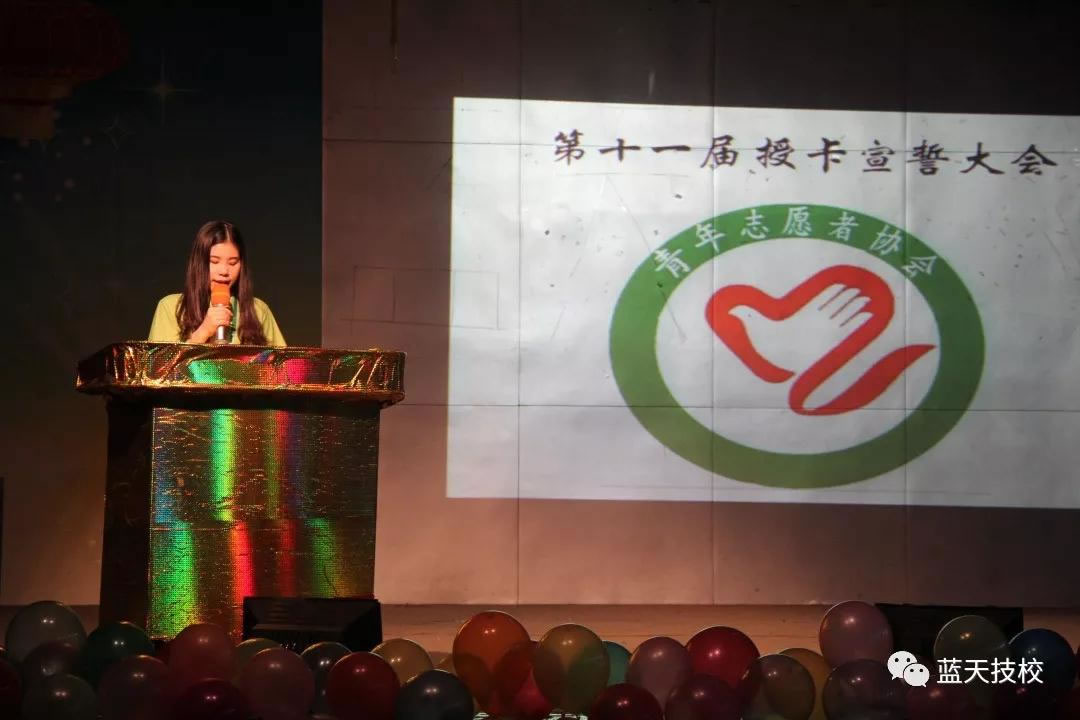 最后,在庄严的宣誓中,每一位新干事都佩戴上了“蓝天青年志愿者工作证”,成为了一名真正的志愿者。