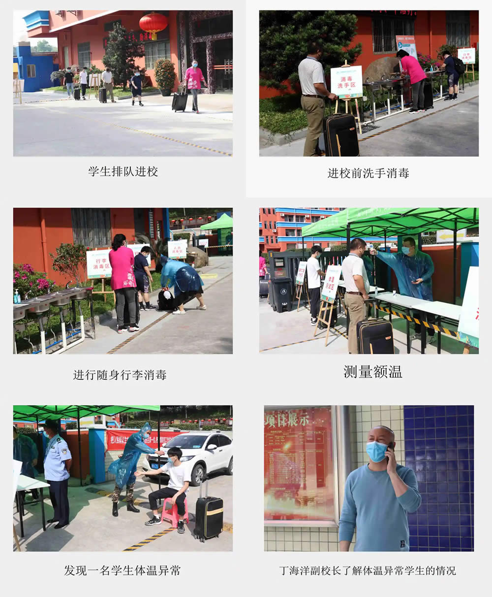 校门监测点人员通过进校体温检测发现可疑症状学生,检验校卫及值守人员对新冠肺炎疫情的应急处置能力和各有关部门的联动机制是否合理。于是出现了本文开头的一幕,彭海师老师向丁海洋副校长进行汇报的情景,就是学生进入校门应急处置的“实战”。