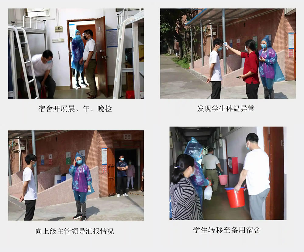 宿舍监测点人员通过晨检、午检和晚检及巡查发现体温异常学生,检验学生管理线、生活指导老师对新冠肺炎疫情的应急处置能力和各有关部门的联动机制是否合理。