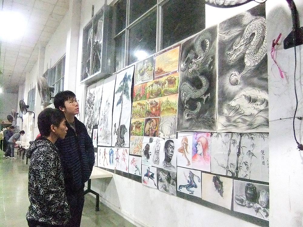 广州市蓝天技工学校 青韵书法社是我校书法爱好者发起并成立,旨在弘扬书法、绘画等艺术文化,提高乐中校园的艺术修养和文化内涵,组织各种有关活动丰富同学们的课外生活,锻炼能力。本社力求开展精、好、品位高的活动,让社员在每一次活动中锻炼自身能力,提高自身水平。自书画社成立以来,每学年都会举办校园书画大赛,为同学们提供展现自我的平台。在特殊节日主题的时间段举办校园书画展,为校园增添文化音符。
