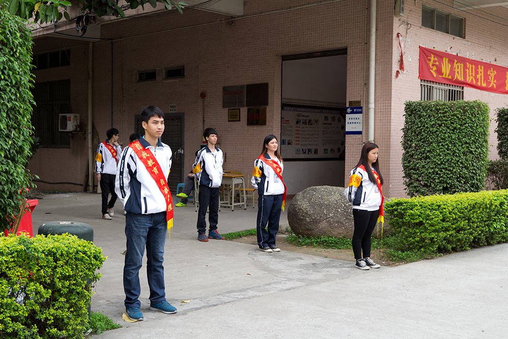我校每天晚上10点半不准出校门,晚上11点熄灯。周一至周五的早上和下午均有辅导员站岗检查你们有没有迟到或者旷课,在各个教学楼会有同学检查你是否仪容仪表达标是否正确佩戴校卡。所以明天早上记得整理一下服装,带上校卡再去上课